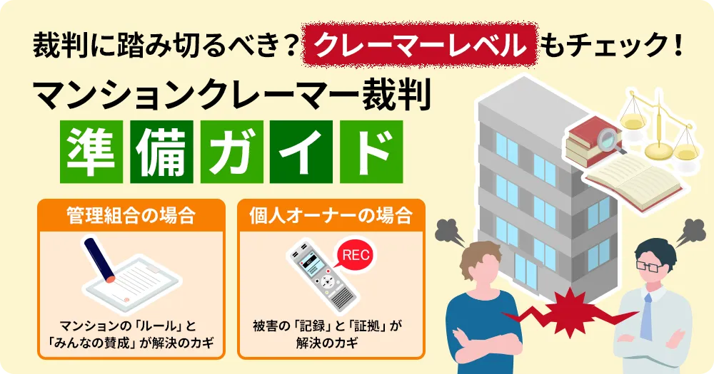 • マンションクレーマー裁判の進め方!管理組合と個人オーナー別に解説